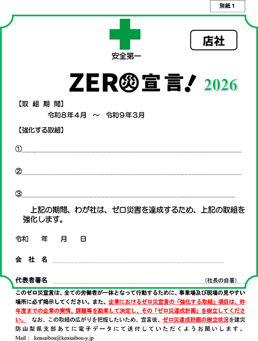 ゼロ災宣言書ダウンロード