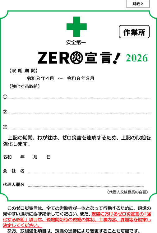 ゼロ災宣言書 作業所用