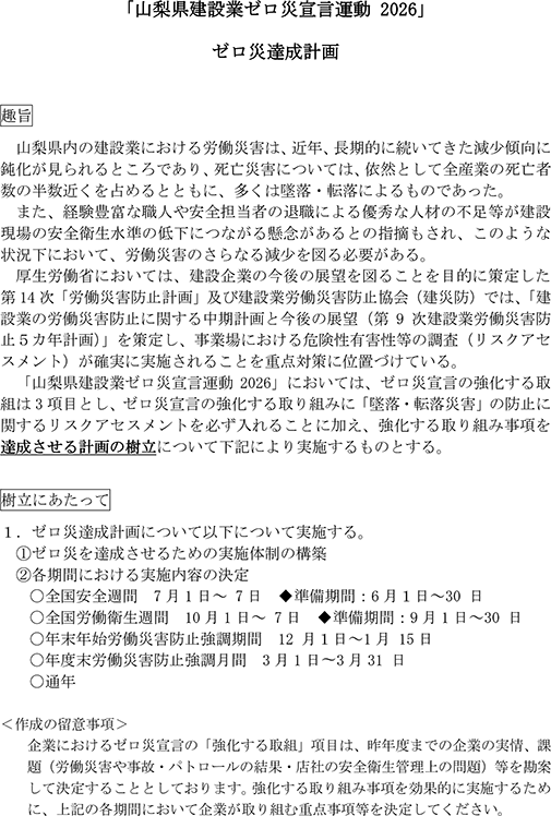 山梨県建設業ゼロ災宣言運動